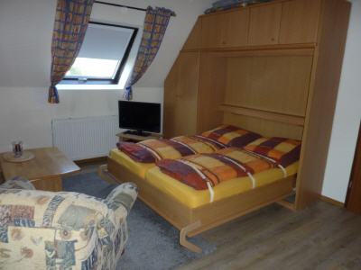 Bei dieser Wohnung handelt es sich um eine gemütliche 30qm Einzimmerwohnung für zwei Personen mit großer Dachterrasse im Obergeschoss unseres Hauses.