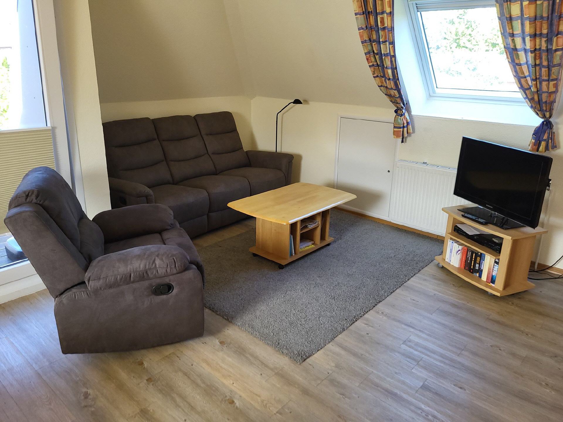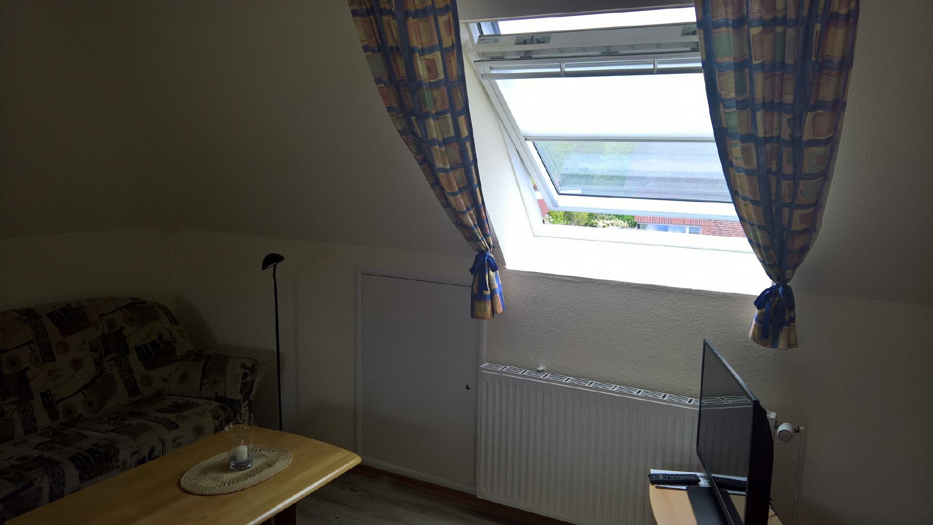 Die Bilder werden aktuell umgestellt, da sich die Wohnungsausstattung teilweise leicht verändert hat und im Rahmen der Dachsanierung neue, weiße Fenster eingebaut wurden. So steht die Glasvitrine nicht mehr in der Wohnung und die Bilder mit braunen Fenstern sind nicht aktuell.
